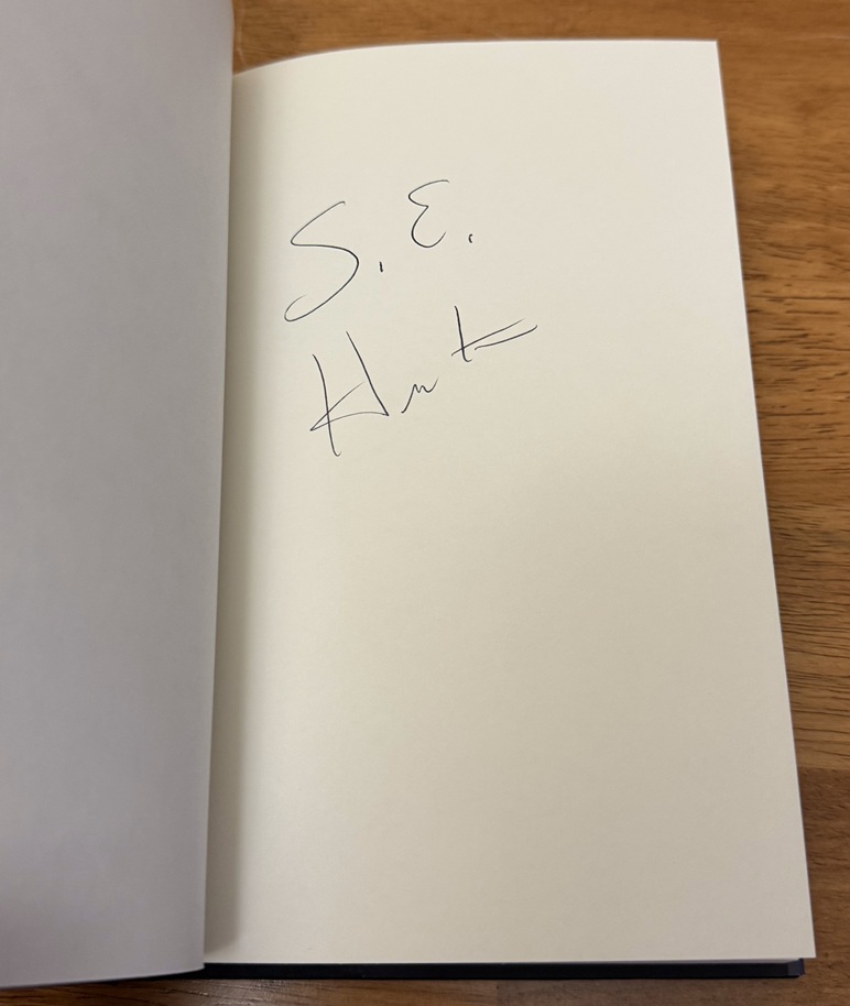 Here is an autographed copy of SE Hinton's The Outsiders.