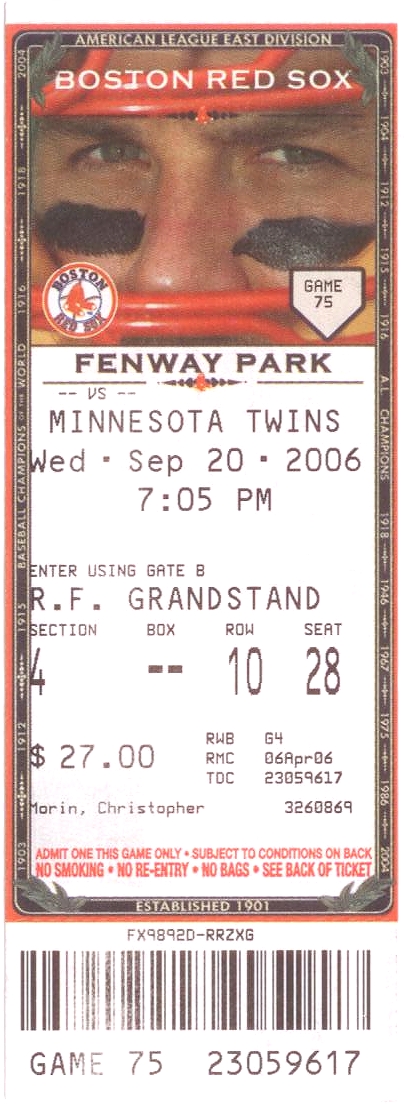 Here's a look at the ticket to the game.