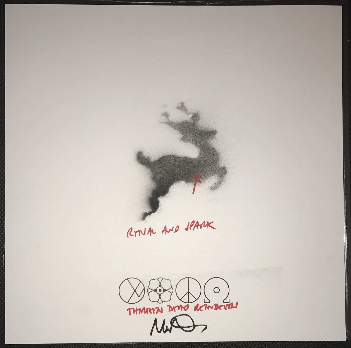 This is a signed Mike Peters Viral Black record jacket original piece of art.