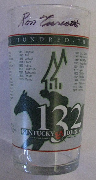 This Kentucky Derby glass was autographed by Ron Turcotte the jockey of Secretariat at the Kentucky Derby on May 6, 2006.